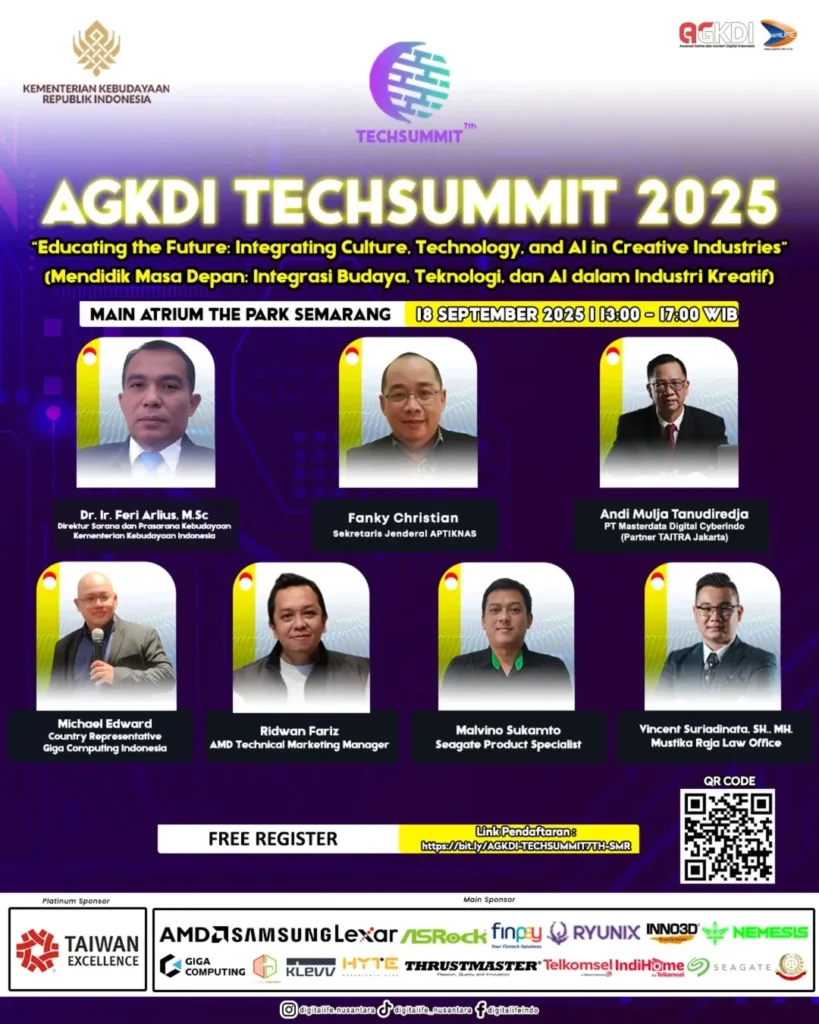 - AGKDI Tech Summit 2025 dengan tema “Educating the Future: Integrating Culture, Technology, and AI in Creative Industries”.